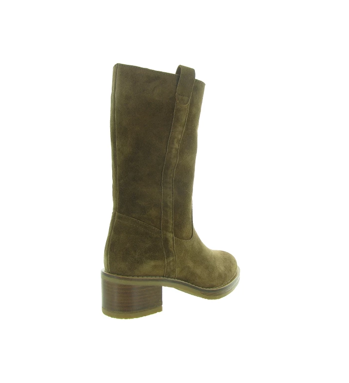 Son cuir nubuck marron est hyper tendance cette année ! De plus, cette botte est montante, elle vous tiendra chaud lors des journées froides et pluvieuses !