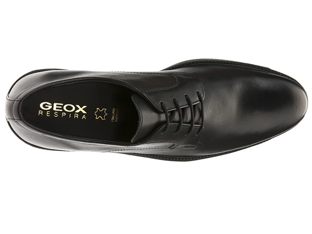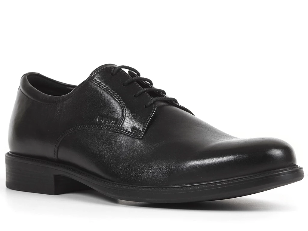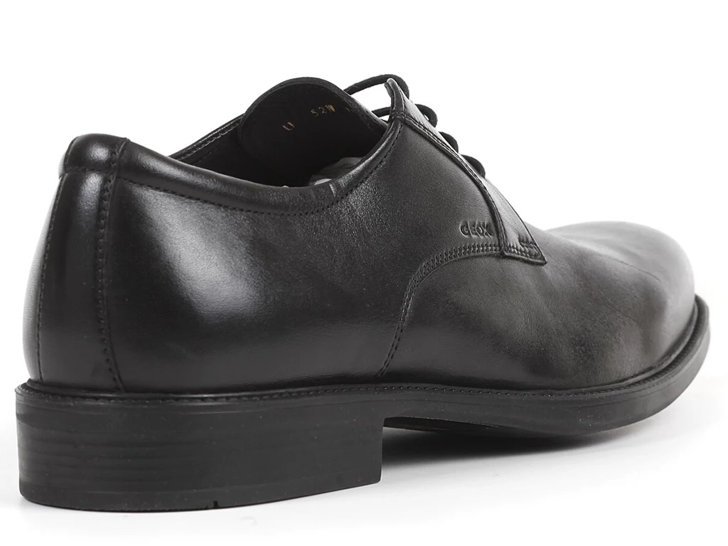 Derby U52W1D CARNABY de la marque GEOX en cuir lisse noir. Voici des chaussure à lacets habillées qui fonctionneront aussi bien avec un costume qu’avec un pantalon cet hiver et vous donneront une petite touche bob chic très tendance avec leur claque lisse très facile à porter. Première en cuir très confortable.