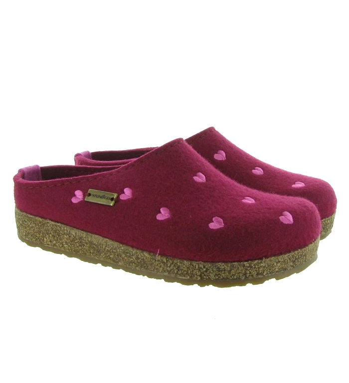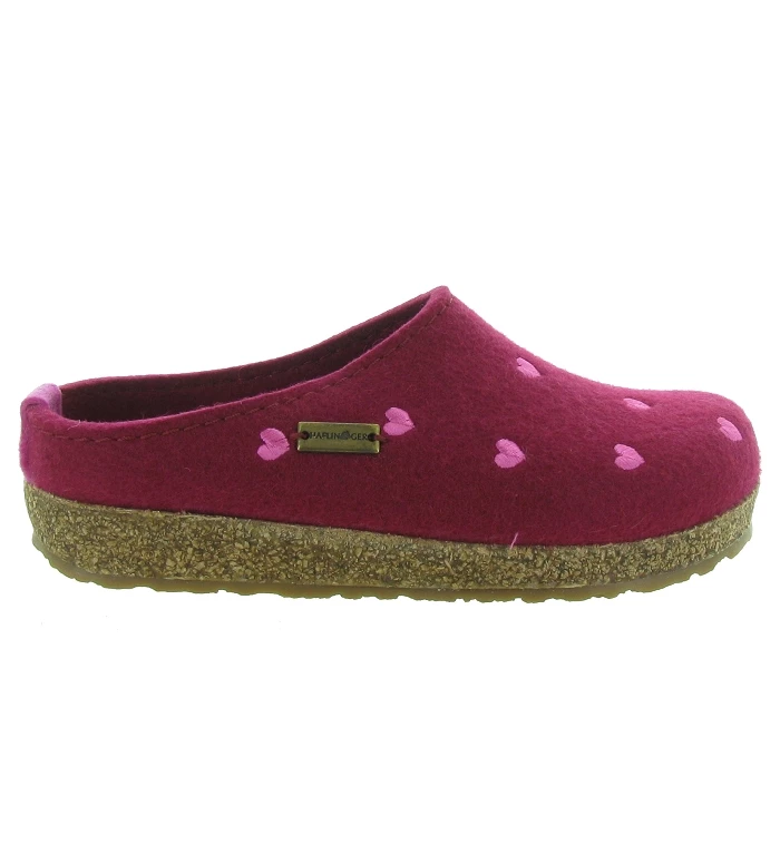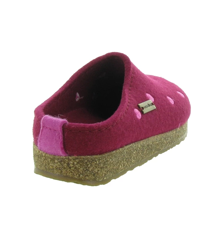 Chaussons HAFLINGER femme, modèle CUORICINI, feutrine rose fushia