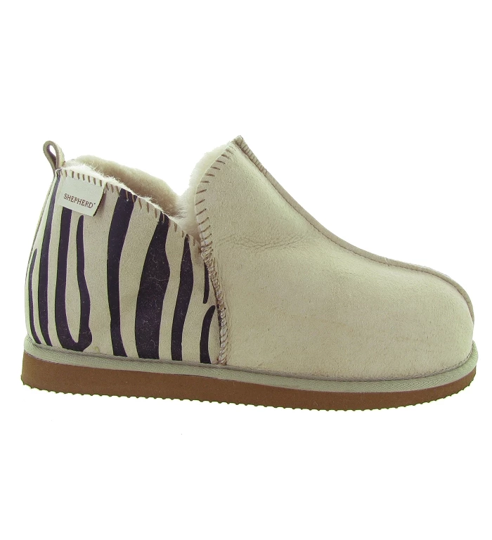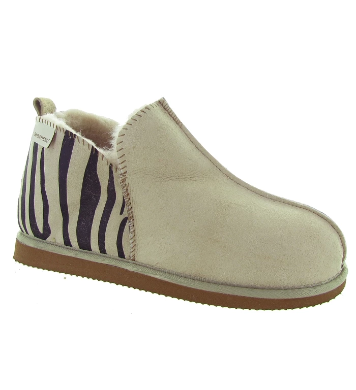 On adore le modèle hyper branché, ANNIE TIGER beige avec un motif zébré sur l’arrière du pied. Les chaussons Shepherd pour femme ont une doublure en mouton véritable pour une chaleur et un confort incomparable! Après une longue journée, vous n’aurez qu’une hâte : mettre vos chaussons Shepherd ! Et le matin, quel bonheur de se réveiller et de mettre ces chaussons douillet ! Et pour coronner le tout, ces pantoufles pour femme ont une semelle antidérapante en cahoutchouc naturel pour ne pas glisser ! Pour être comme sur un petit nuage, optez pour ces chaussons Shepherd !!