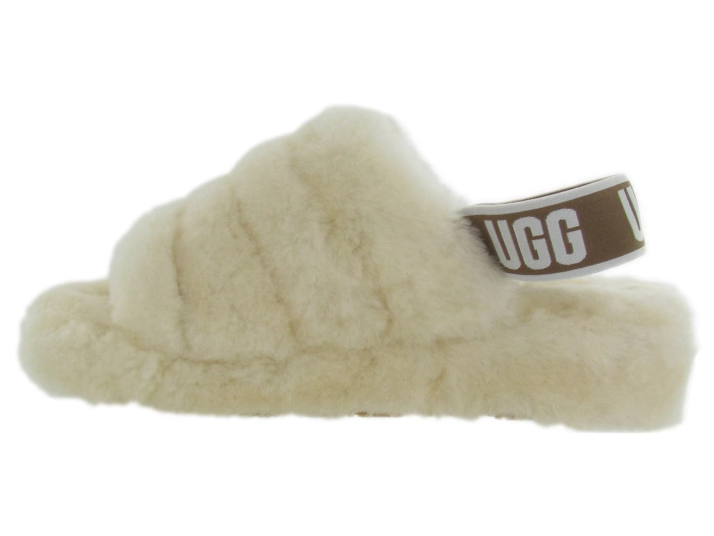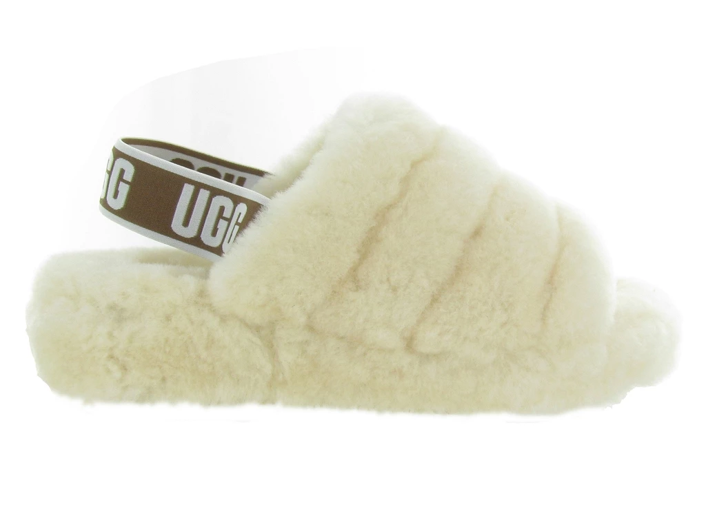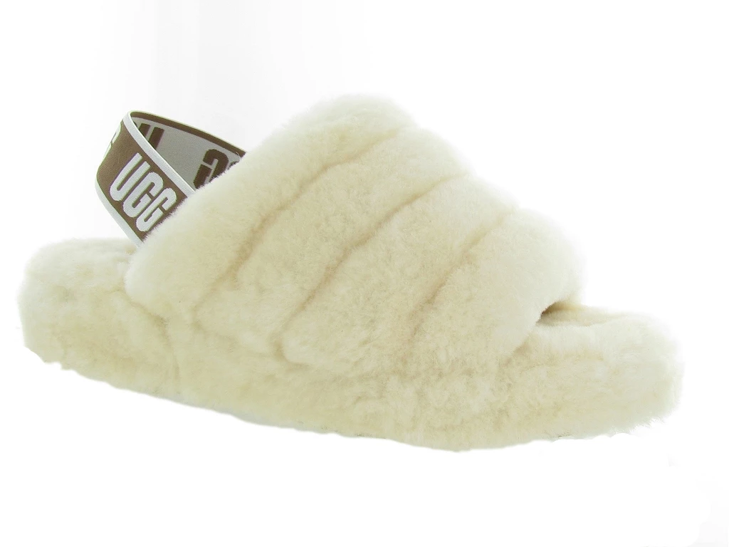 Chaussons UGG AUSTRALIA femme, modèle FLUFF YEAH SLIDE beige ecru
