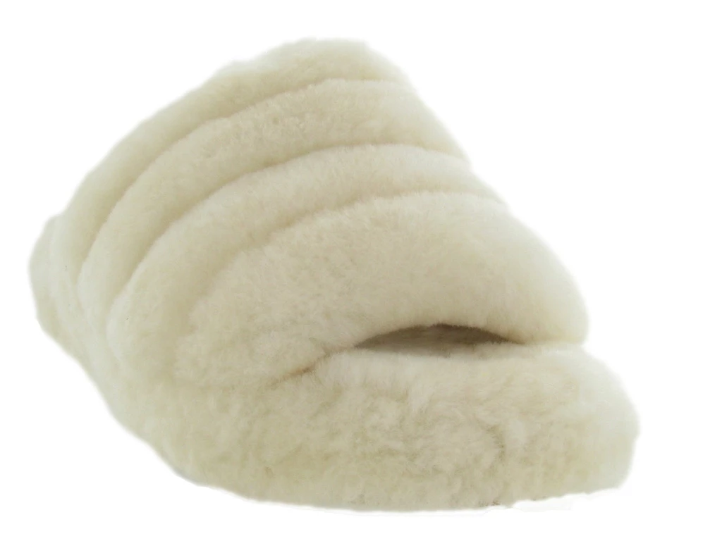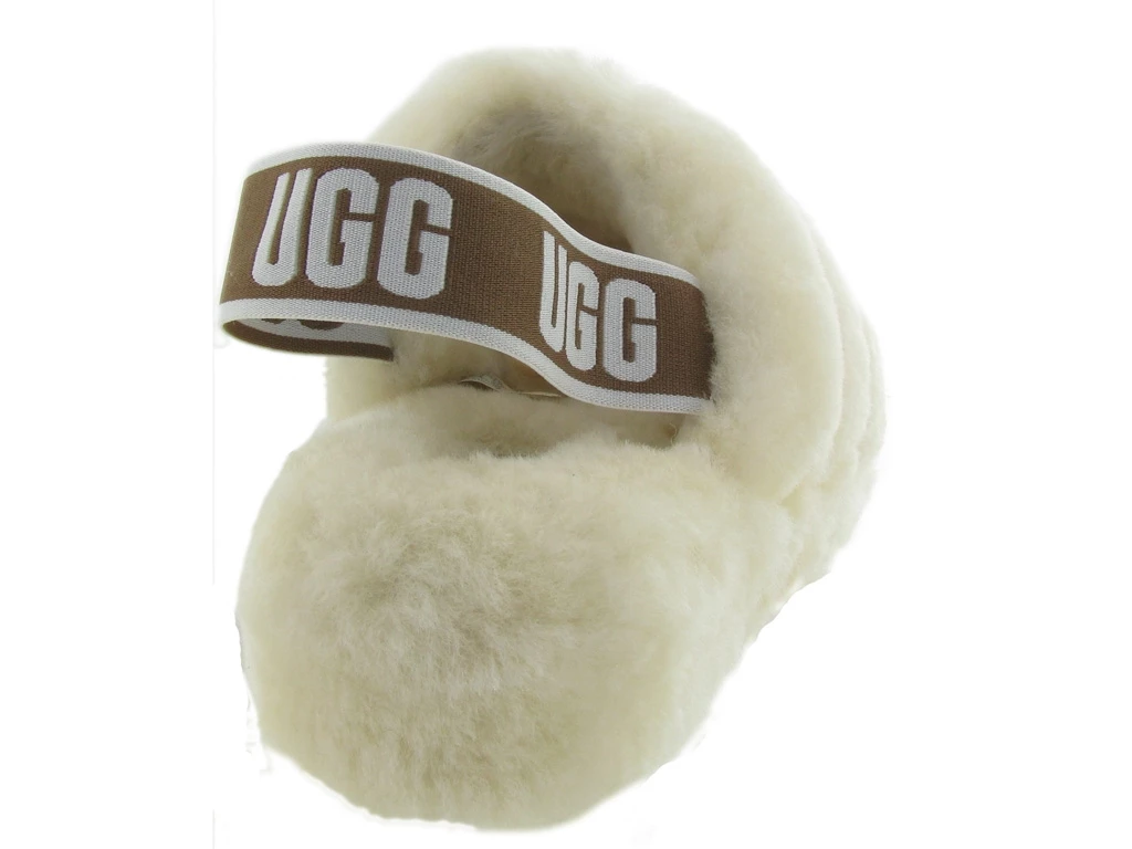 Le Fluff Yeah de UGG Australia combine pantoufle et sandale. Le chausson est en peau de mouton et il est composé d’une sangle élastique au talon avec le logo UGG. Il maintient alors parfaitement le pied. La semelle extérieure est en caoutchouc.