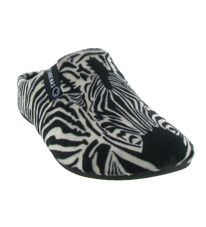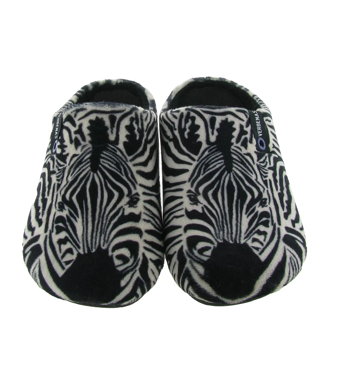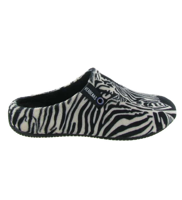 Chaussons VERBENAS femme, modèle YORK ZEBRE, noir et blanc